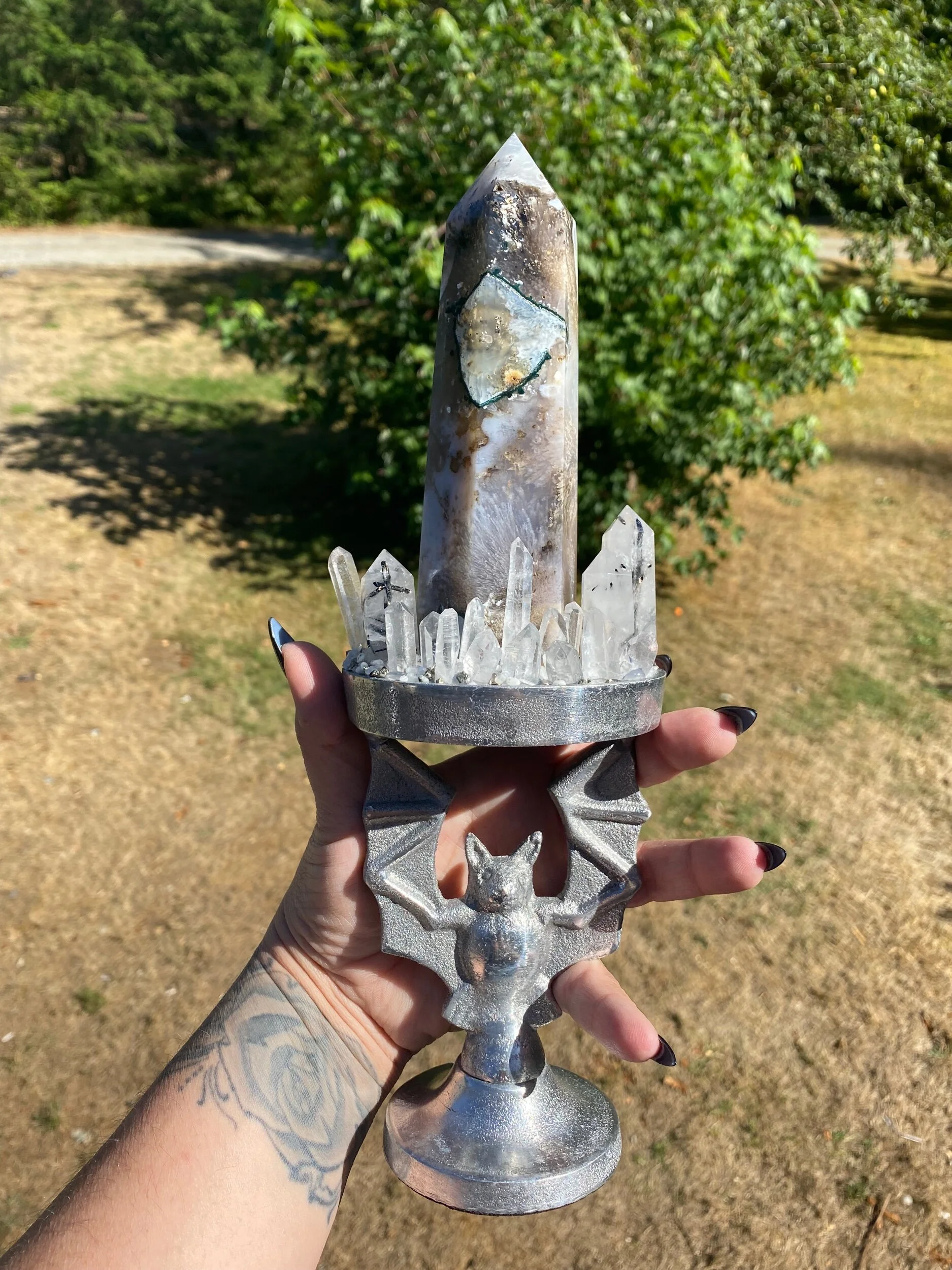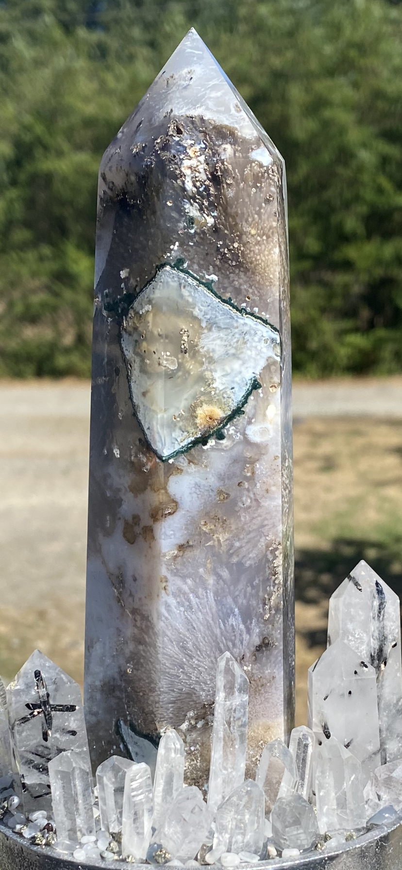 Shop › Rutile Agate Display Image 1 of 4 Image 2 of 4 Image 3 of 4 Image 4 of 4 Rutile Agate Display $175.00 Sold Out XL rutile agate tower. With black tourmaline towers, Quartz points and moonstone chips Sold Out Added! XL rutile agate tower. With black tourmaline towers, Quartz points and moonstone chips