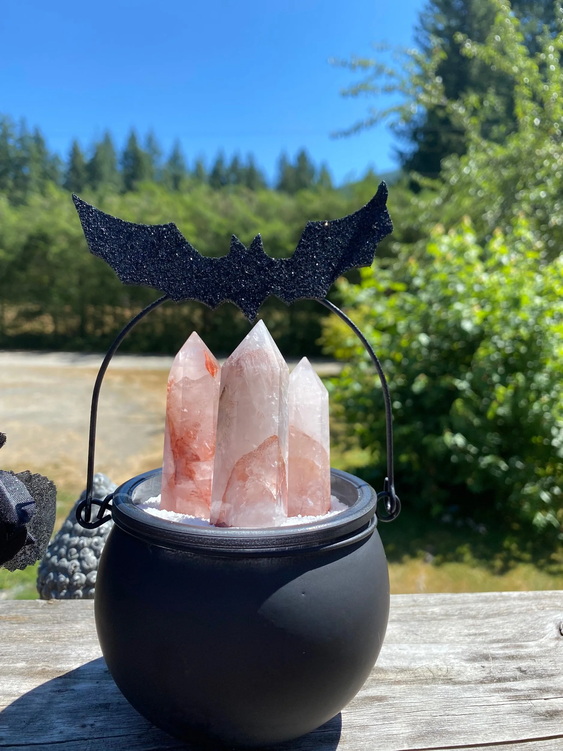 Shop › Fire Quartz Cauldron Image 1 of 2 Image 2 of 2 Fire Quartz Cauldron $75.00 Sold Out 3 fire Quartz/hematoid quartz towers in a frosted matte black glass cauldron. White sand included Sold Out Added! 3 fire Quartz/hematoid quartz towers in a frosted matte black glass cauldron. White sand included