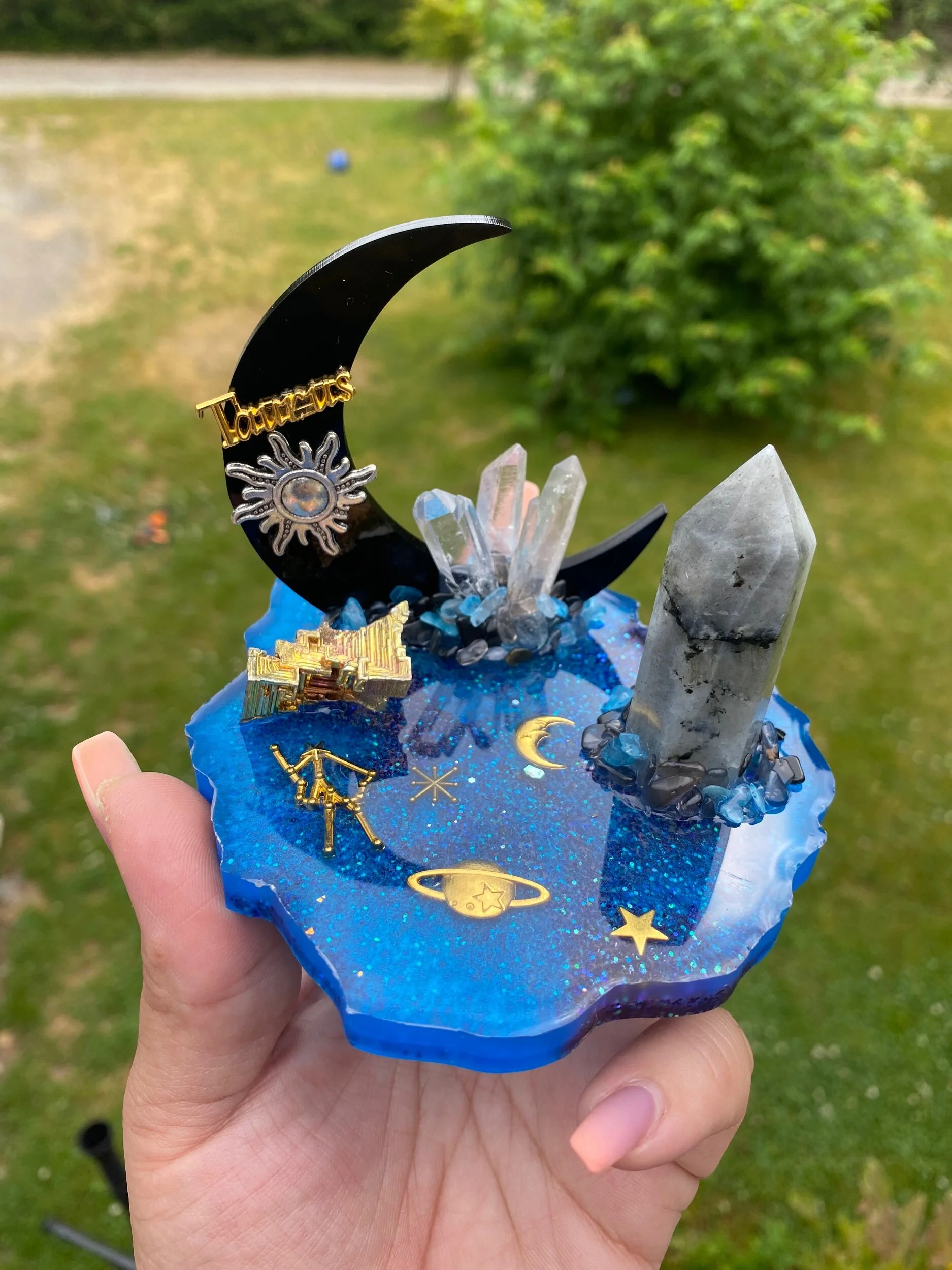 With a labradorite tower, bismuth, Quartz points and chips of obsidian and blue topaz
