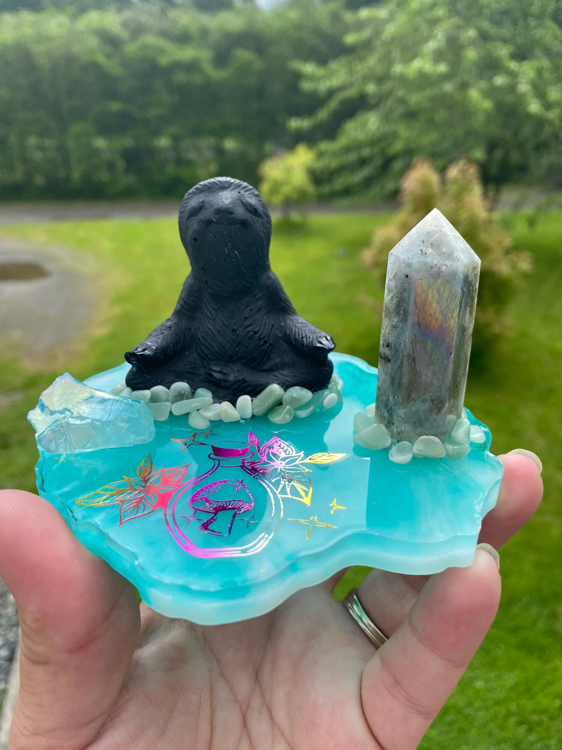 Mini meditating sloth with labradorite tower
