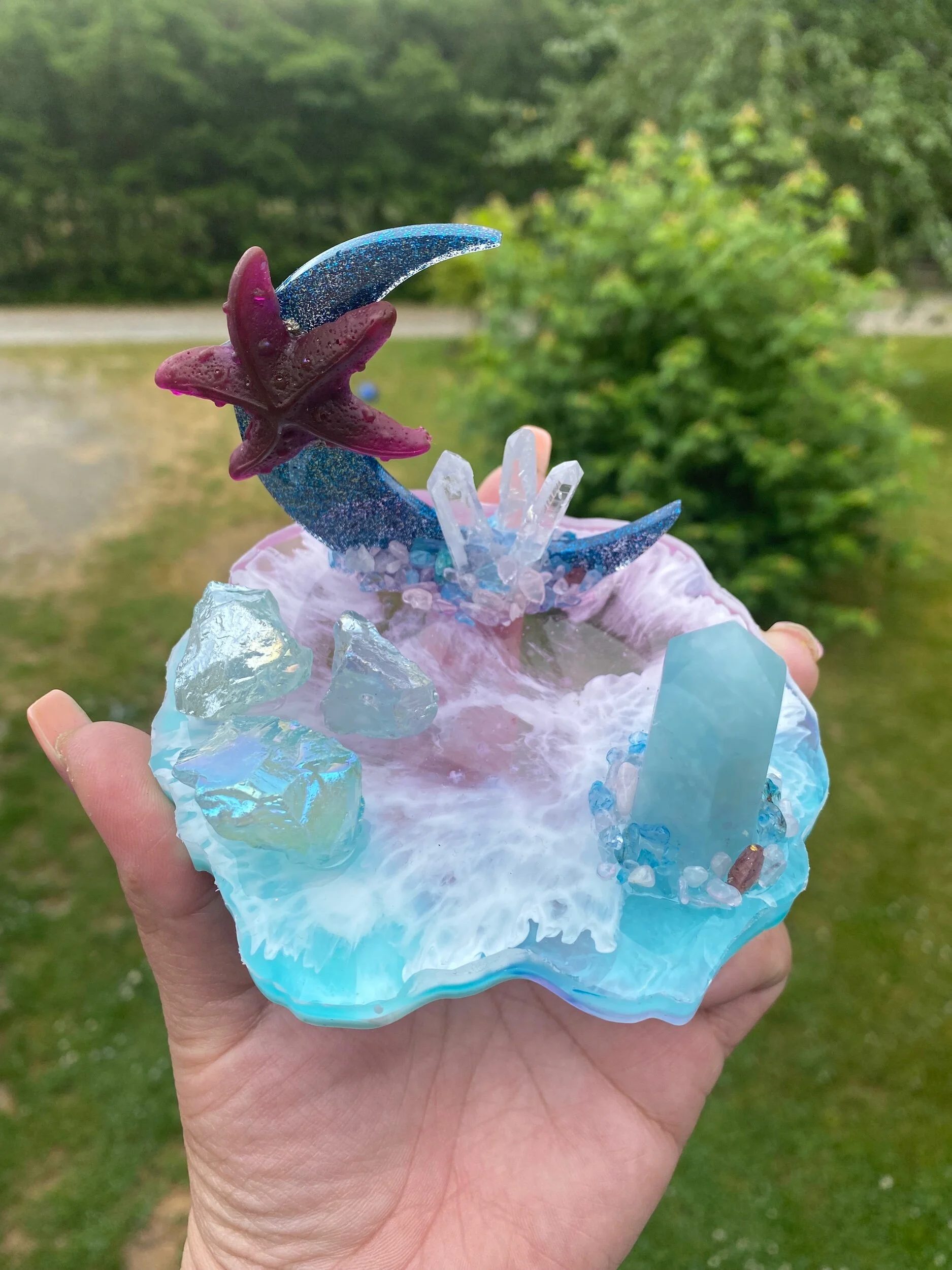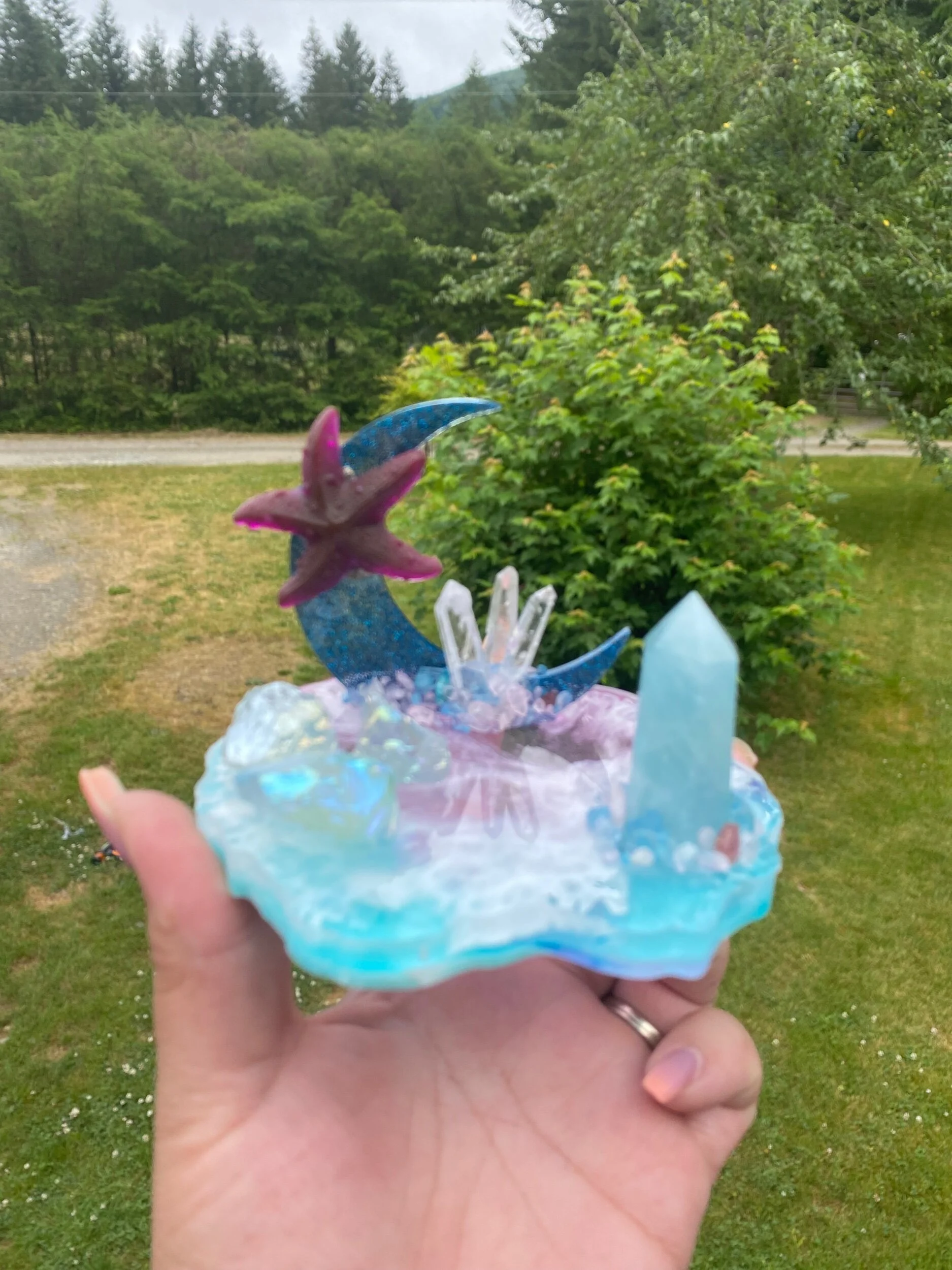 Shop › Mini Moon with Aquamarine Tower Image 1 of 2 Image 2 of 2 Mini Moon with Aquamarine Tower $65.00 Sold Out With high quality aquamarine tower, blue aura Quartz, chips of rose Quartz and blue topaz Sold Out Added! With high quality aquamarine tower, blue aura Quartz, chips of rose Quartz and blue topaz