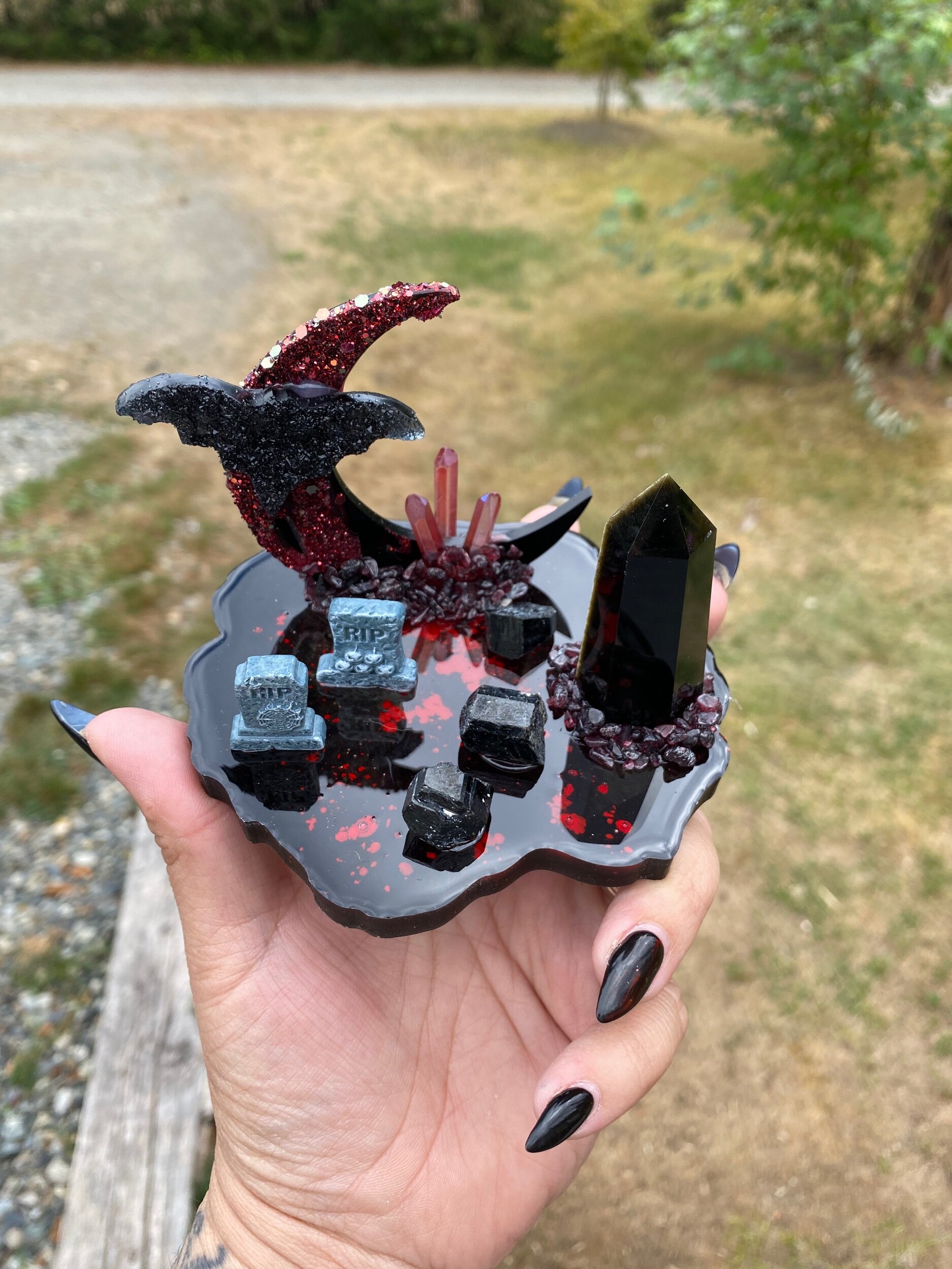 Shop › Halloween mini #2 Image 1 of 2 Image 2 of 2 Halloween mini #2 $69.00 Sold Out With an obsidian tower, red aura points, chips of garnet and raw black tourmaline Sold Out Added! With an obsidian tower, red aura points, chips of garnet and raw black tourmaline