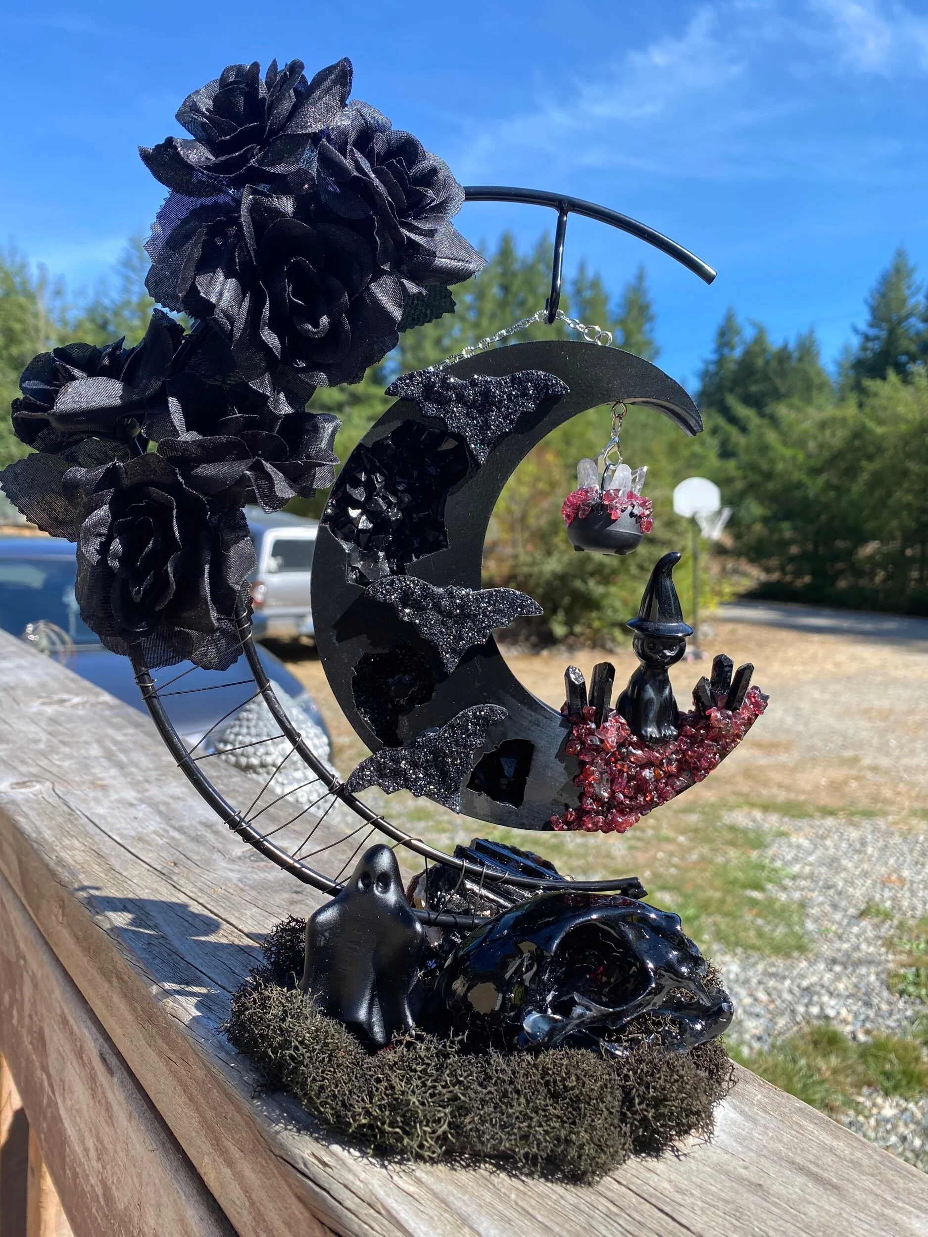 Shop › Kitty Hanging Moon Image 1 of 2 Image 2 of 2 Kitty Hanging Moon $195.00 Sold Out With an obsidian kitty, garnet chips, a crystal cauldron and a huge hunk of black tourmaline. *Faux cat skull Sold Out Added! With an obsidian kitty, garnet chips, a crystal cauldron and a huge hunk of black tourmaline. *Faux cat skull
