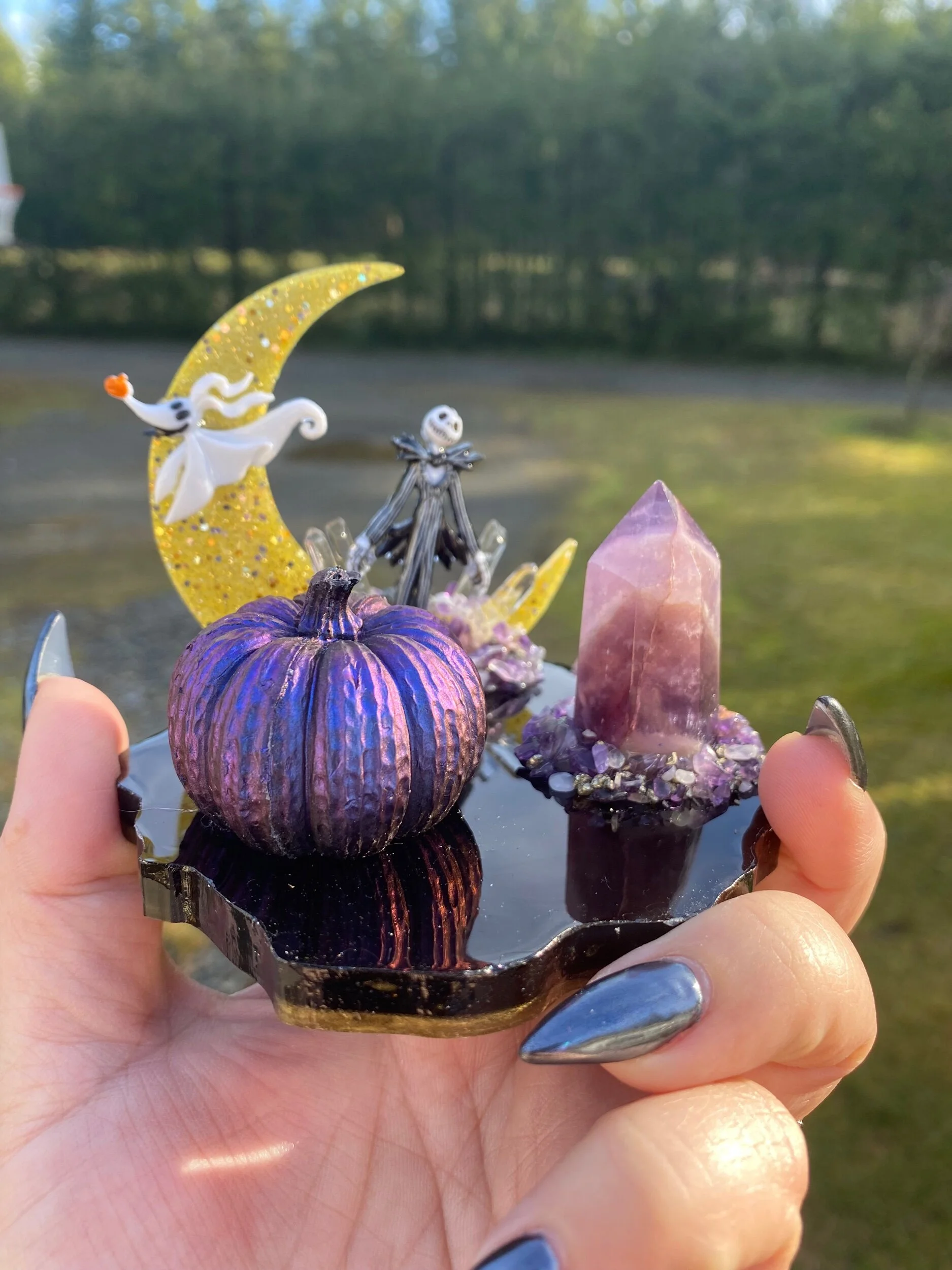 With a purple fluorite tower, Quartz points and chips of pyrite and amethyst