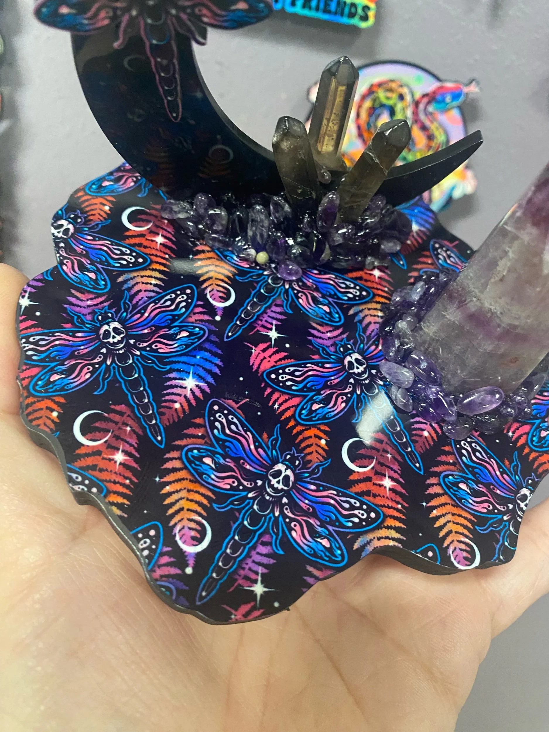 Shop › Mini Moon with Purple Fluorite Tower Image 1 of 4 Image 2 of 4 Image 3 of 4 Image 4 of 4 Mini Moon with Purple Fluorite Tower $69.00 With raw sodalite, amethyst sphere, smoky quartz points and amethyst chips. Add To Cart Added! With raw sodalite, amethyst sphere, smoky quartz points and amethyst chips.