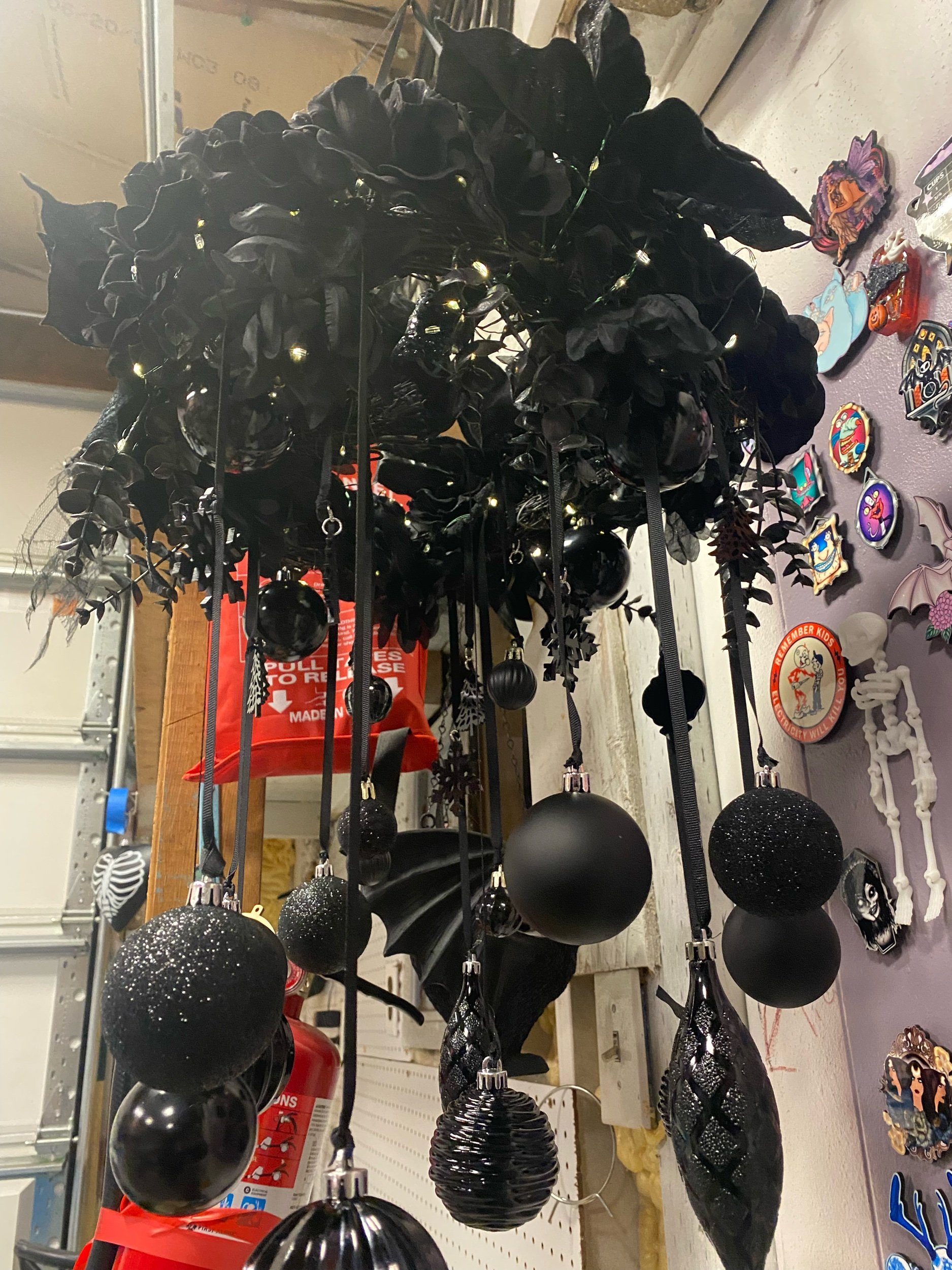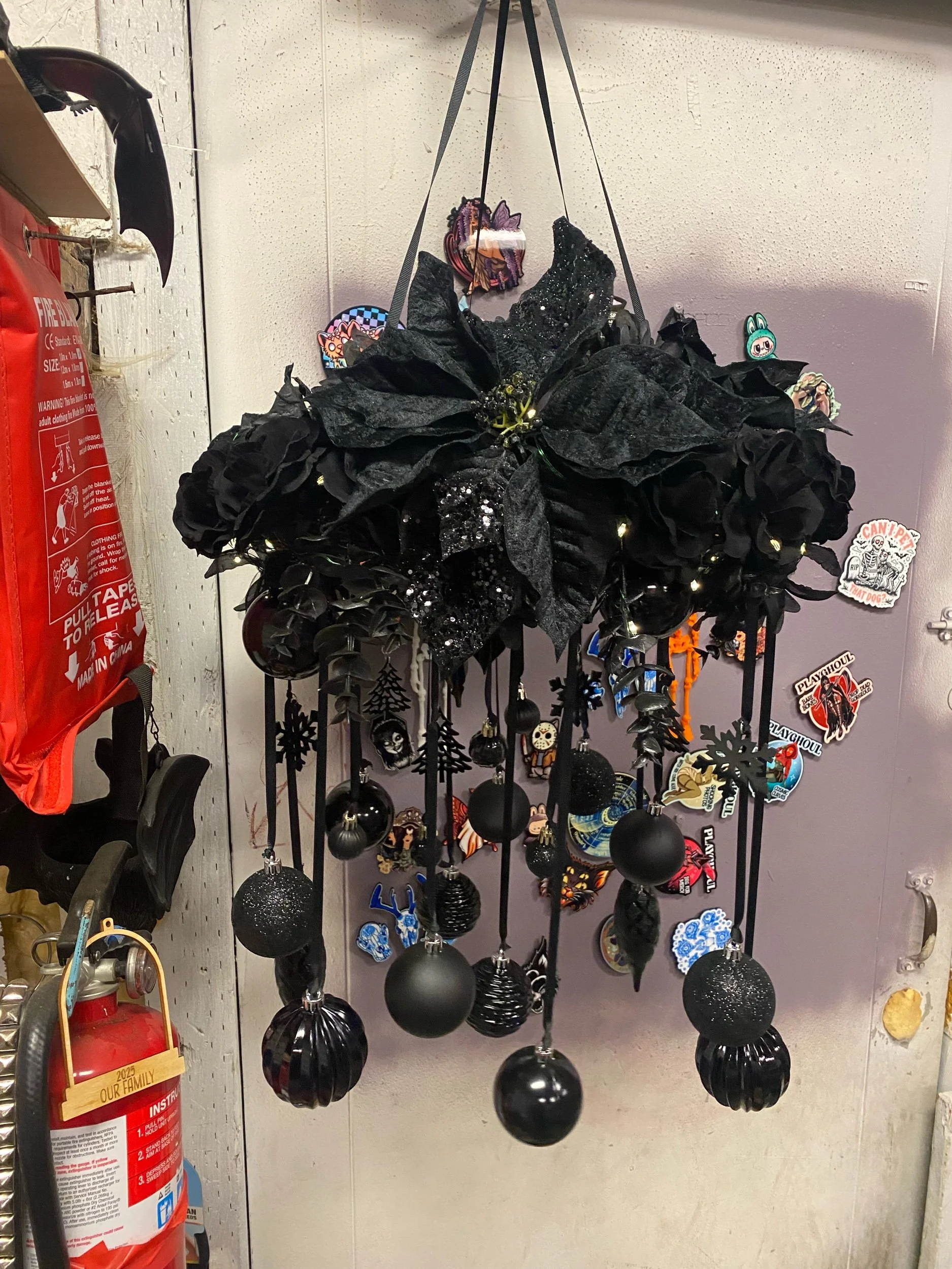 Shop › Gothic Christmas Chandelier Wreath Image 1 of 8 Image 2 of 8 Image 3 of 8 Image 4 of 8 Image 5 of 8 Image 6 of 8 Image 7 of 8 Image 8 of 8 Gothic Christmas Chandelier Wreath $275.00 With battery operated lights18x30 Add To Cart Added! With battery operated lights18x30