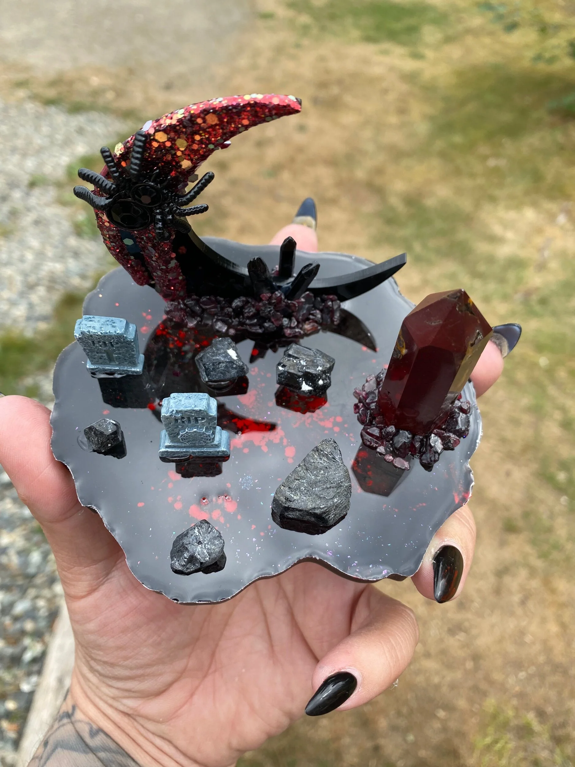 Shop › Halloween mini #4 Image 1 of 2 Image 2 of 2 Halloween mini #4 $69.00 Sold Out With a mookaite tower, obsidian points, chips of garnet and raw black tourmaline Sold Out Added! With a mookaite tower, obsidian points, chips of garnet and raw black tourmaline