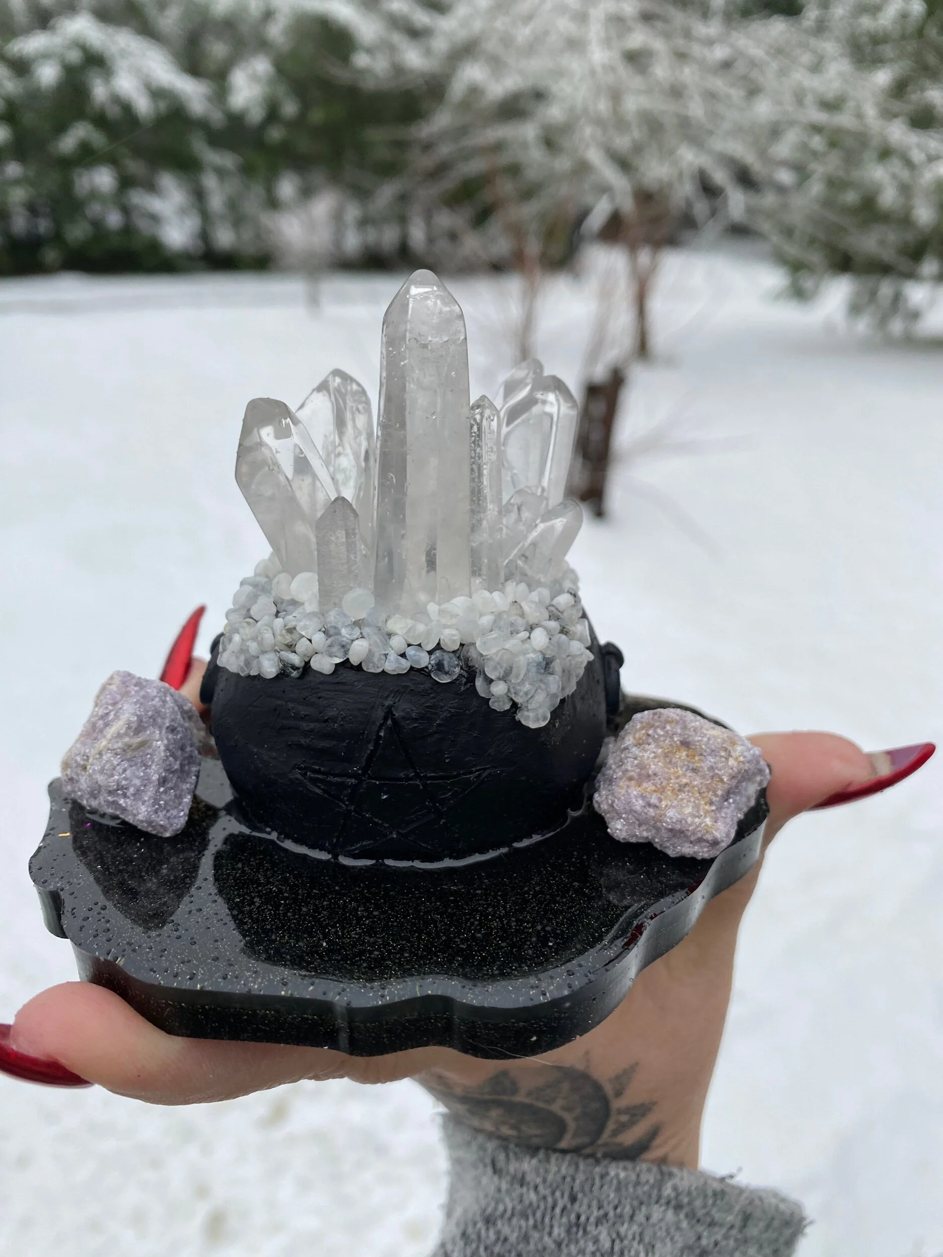 With raw lepidolite, moonstone chips and Lepidolite gravel.