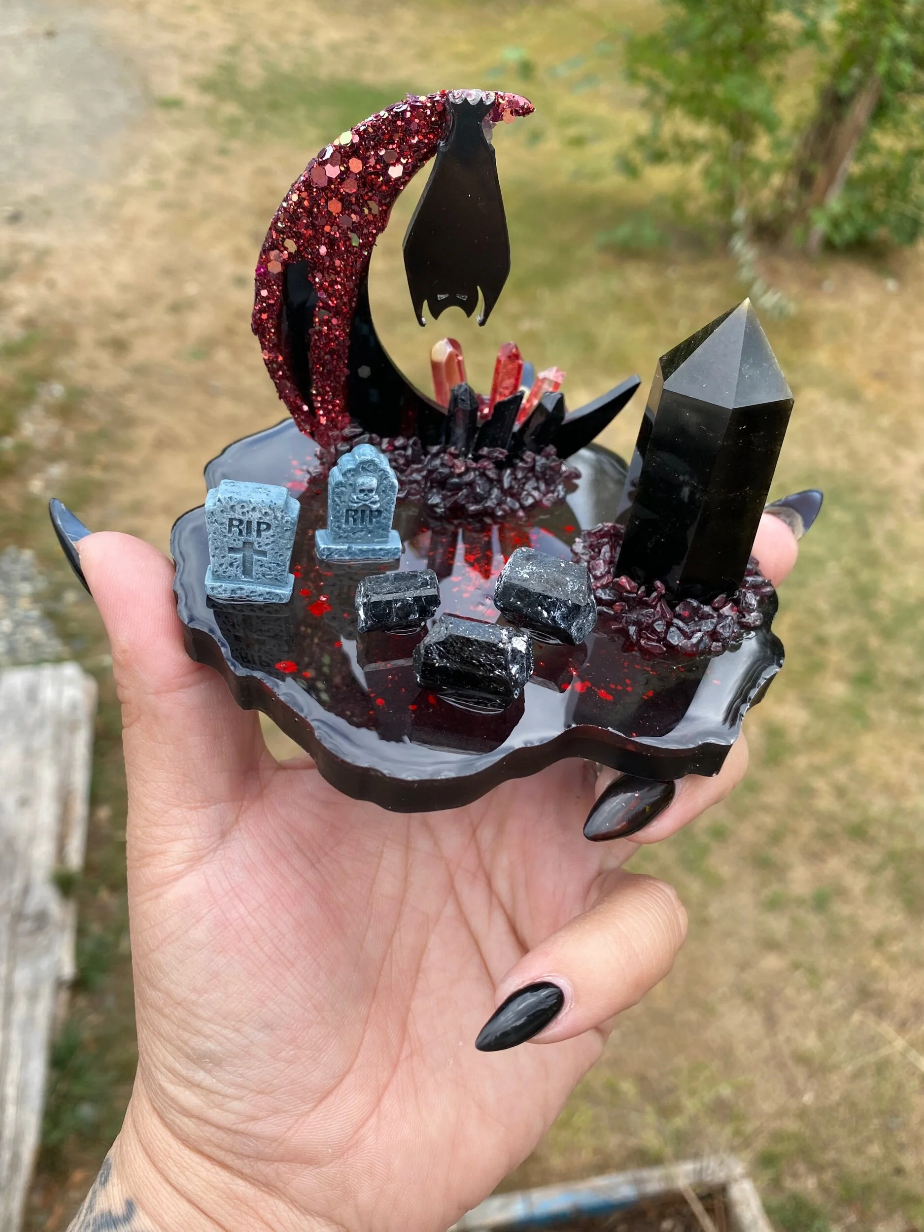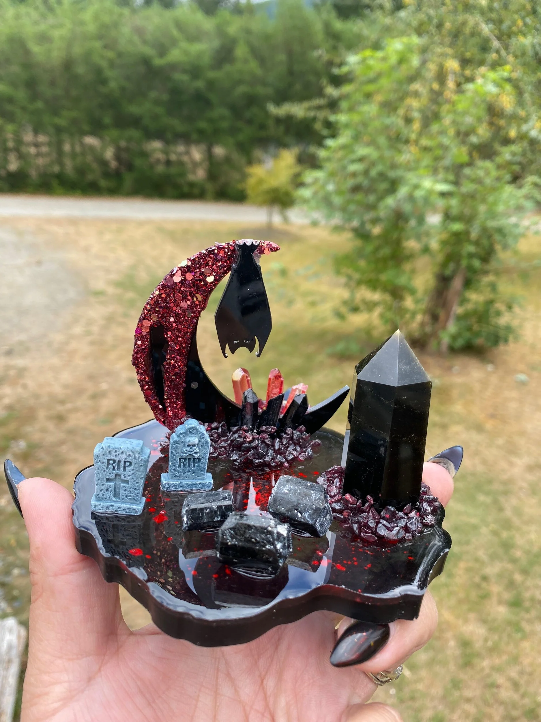 Shop › Halloween Mini #1 Image 1 of 2 Image 2 of 2 Halloween Mini #1 $69.00 Sold Out With a blue tigers eye tower, obsidian and red aura points, chips of garnet and raw black tourmaline Sold Out Added! With a blue tigers eye tower, obsidian and red aura points, chips of garnet and raw black tourmaline