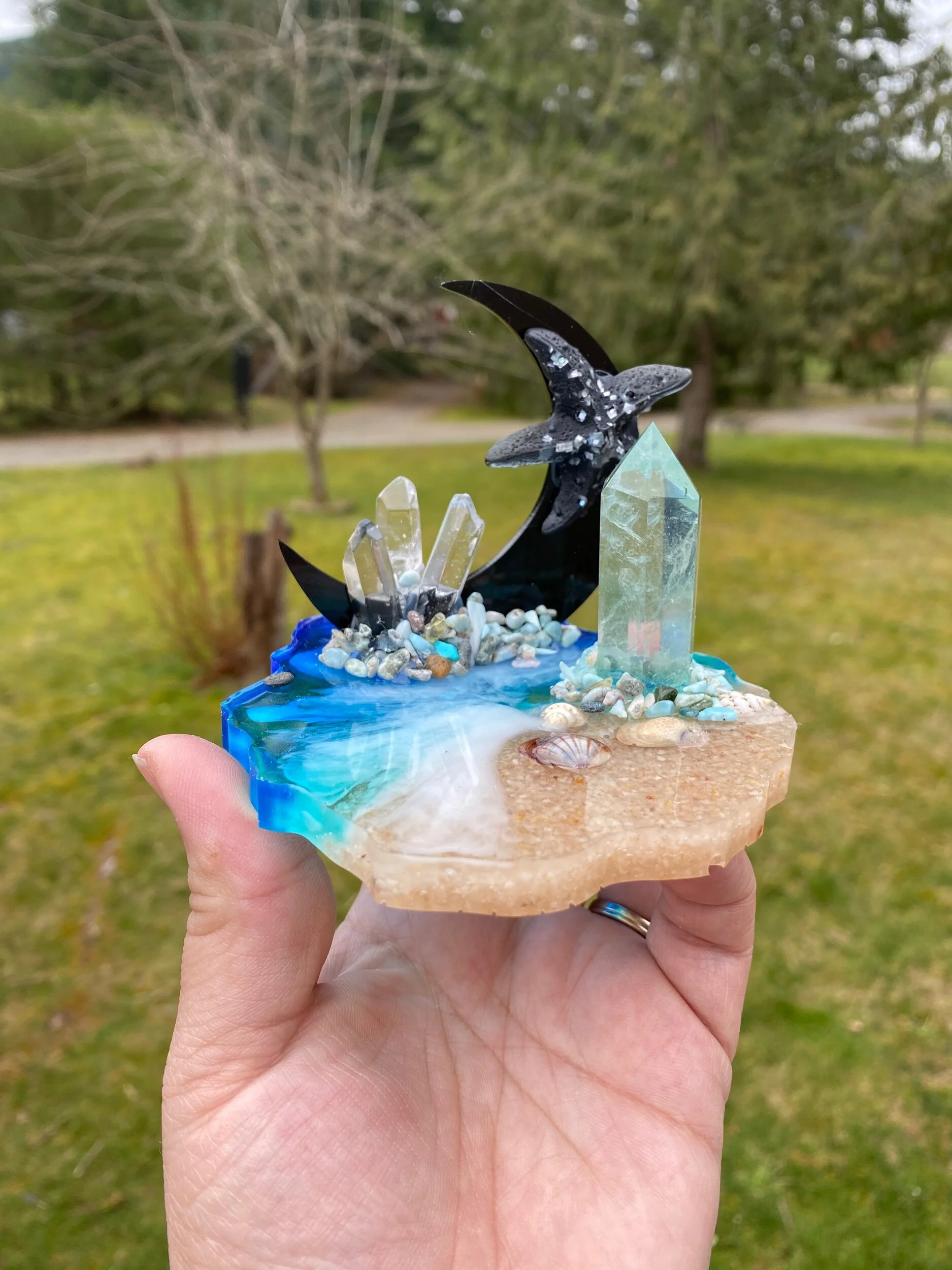 With Larimar chips, Quartz points and seashells