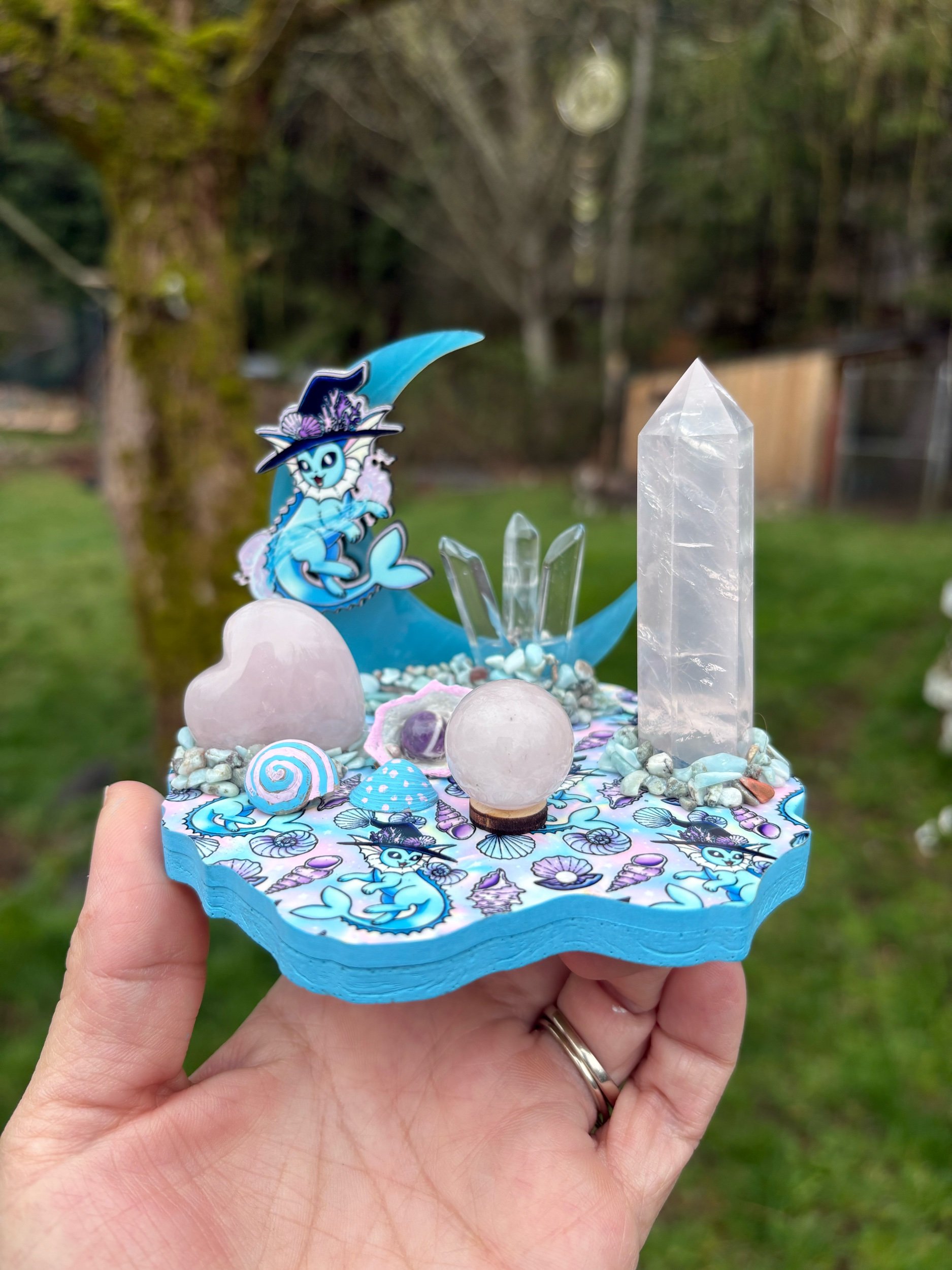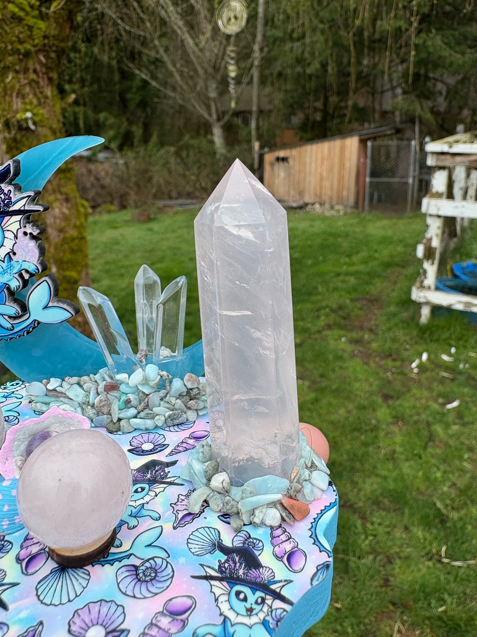 Shop › Mini Moon with Rose Quartz tower Image 1 of 5 Image 2 of 5 Image 3 of 5 Image 4 of 5 Image 5 of 5 Mini Moon with Rose Quartz tower $69.00 Sold Out With a rose Quartz heart, rose quartz mini sphere, amethyst “pearl”, quartz points and chips of Larimar Sold Out Added! With a rose Quartz heart, rose quartz mini sphere, amethyst “pearl”, quartz points and chips of Larimar