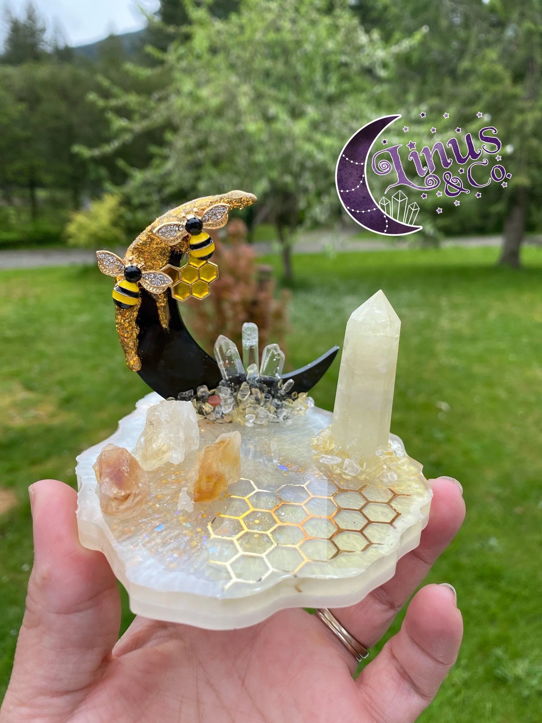 With orange and honey calcite and chips of citrine, clear quartz and golden sunstone