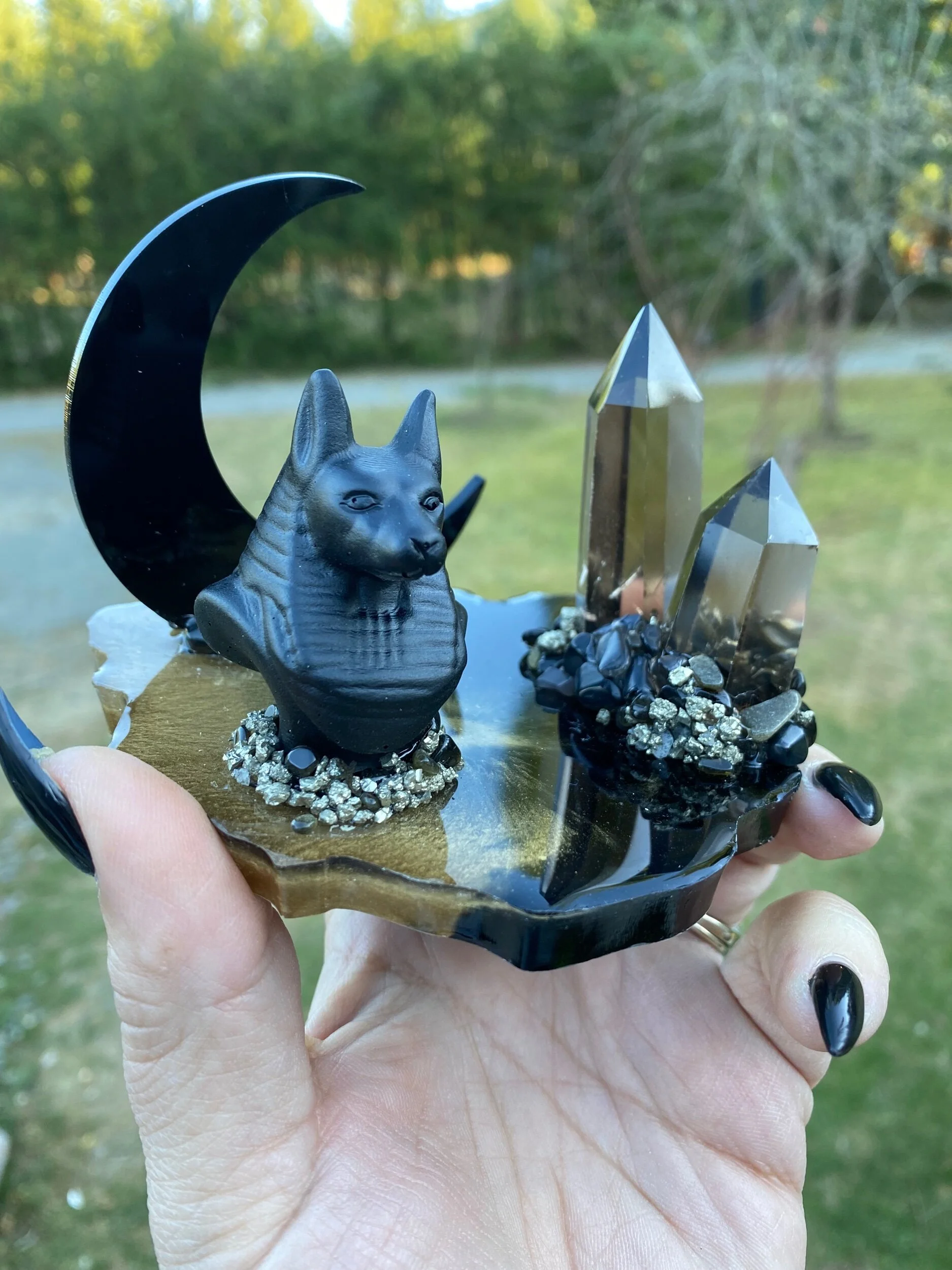 With Quartz points, 2 smoky quartz towers and chips of obsidian and pyrite