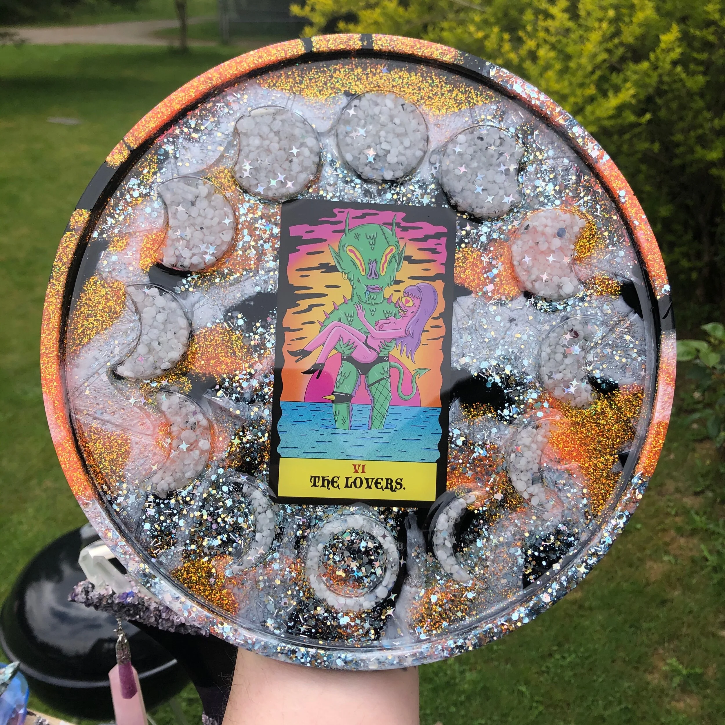 Shop › CLEARANCE Moon phase tray with Moonstone Chips and Lovers tarot Image 1 of 2 Image 2 of 2 CLEARANCE Moon phase tray with Moonstone Chips and Lovers tarot Sale Price: $25.00 Original Price: $49.00 Sold Out Sold Out Added!