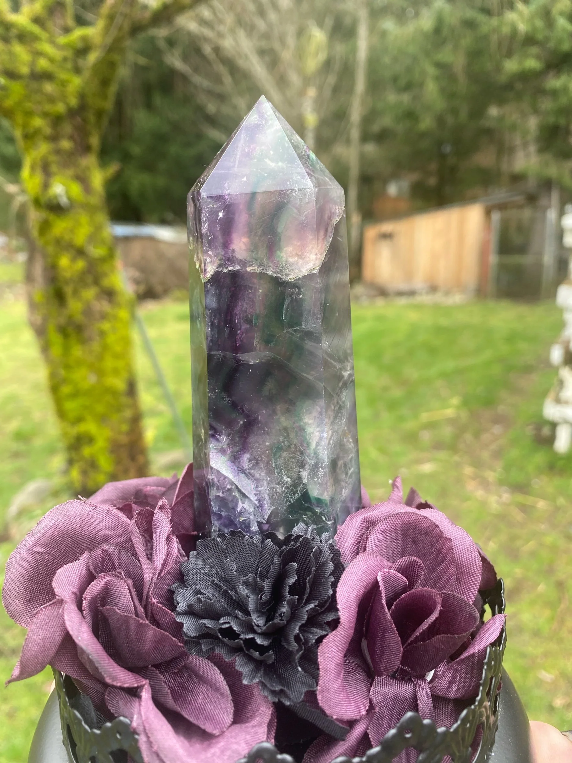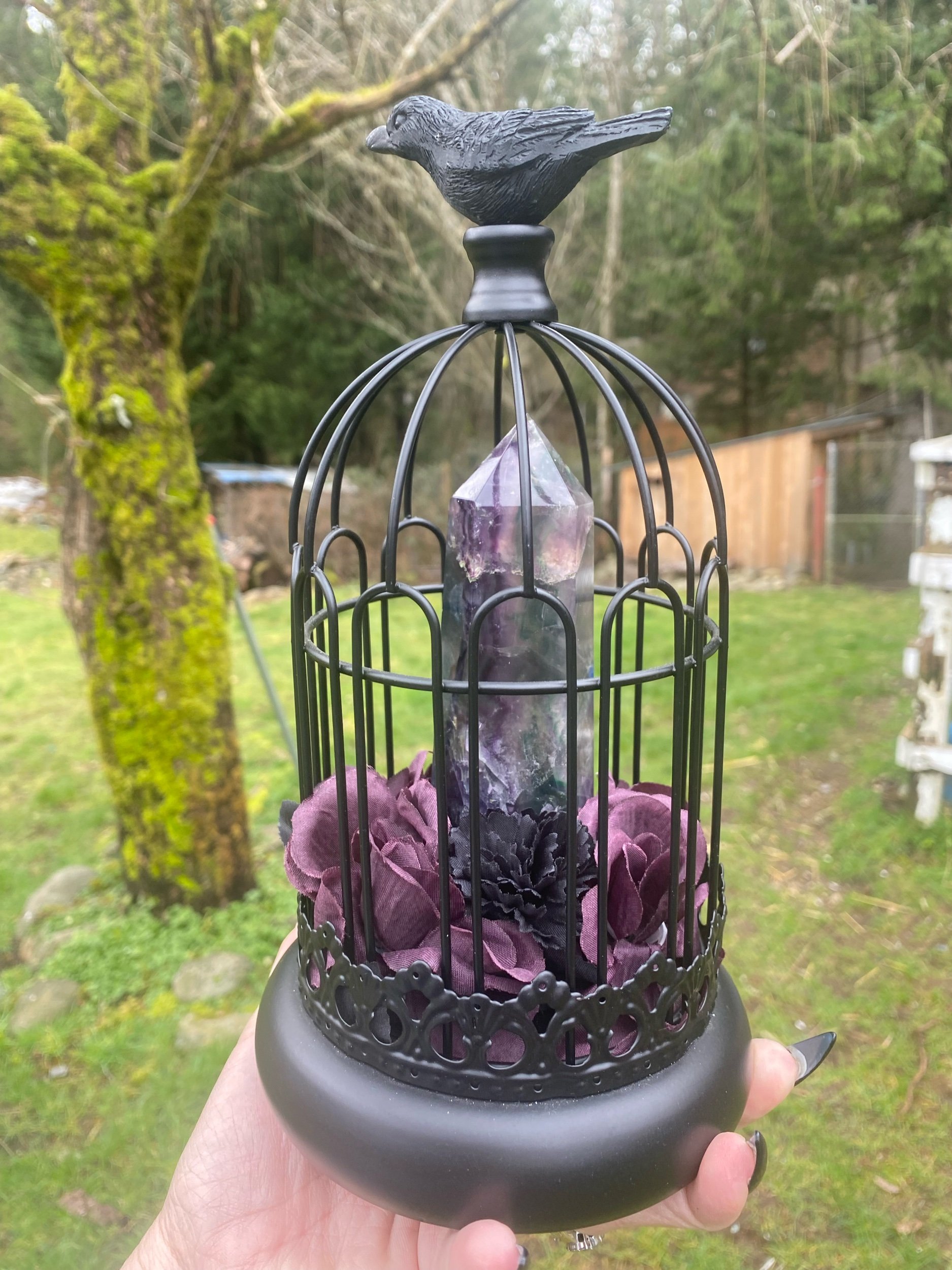 Shop › Rainbow Fluorite in Cage Image 1 of 3 Image 2 of 3 Image 3 of 3 Rainbow Fluorite in Cage $95.00 Sold Out Large rainbow fluorite tower with faux florals inside a back wire cage10” tall x 6” wide Sold Out Added! Large rainbow fluorite tower with faux florals inside a back wire cage10” tall x 6” wide