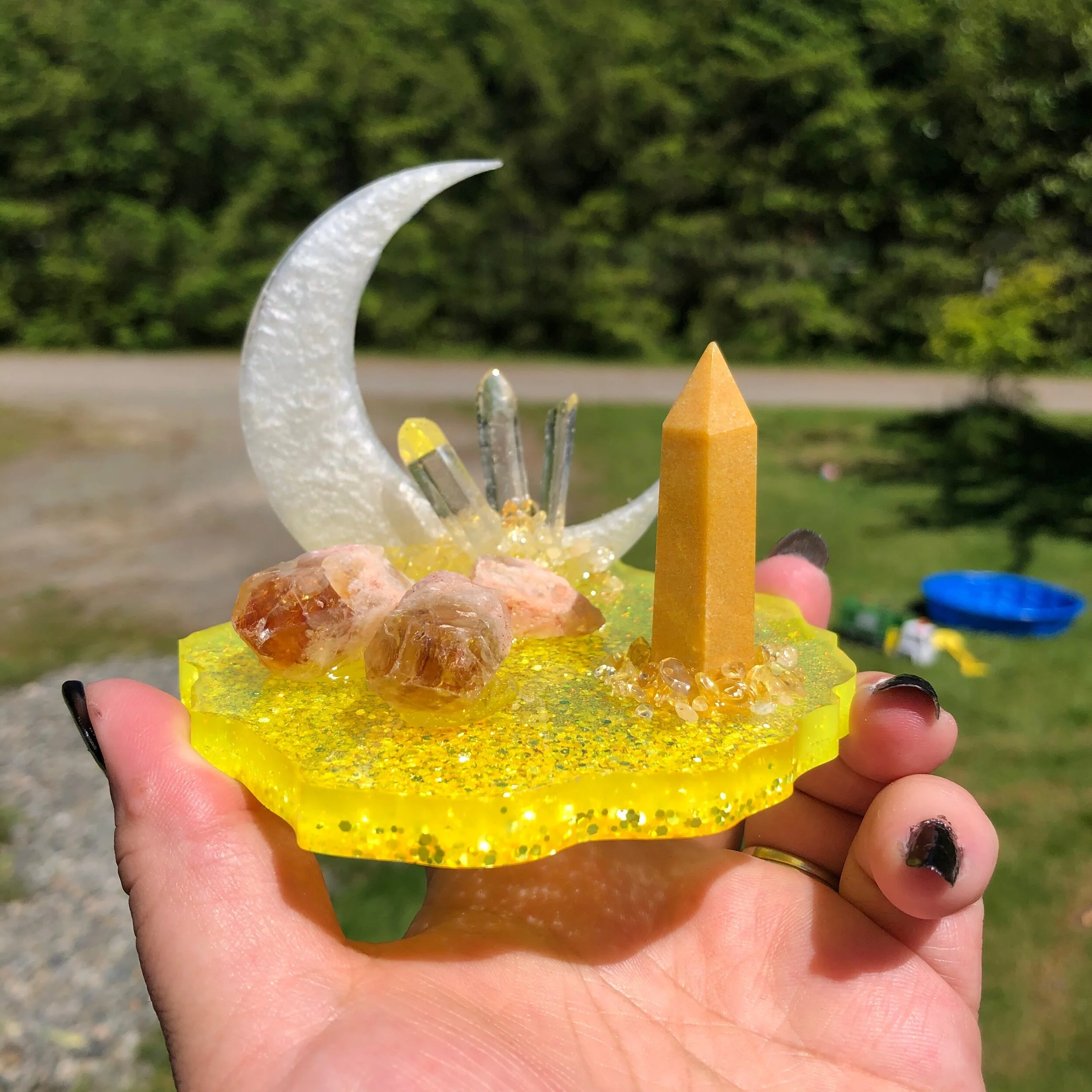 Yellow Aventurine tower, raw with polished point citrine and citrine chips